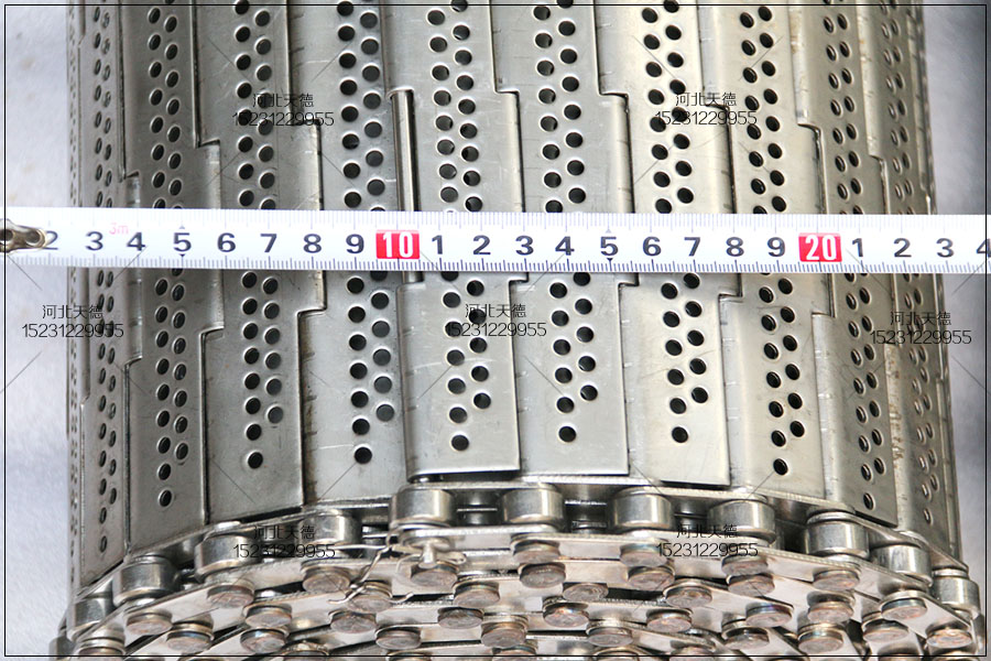鏈板輸送帶是采用鏈條與板材加工成的,總寬度是70公分,長度是10米,食品輸送機的傳送距離是5米,板厚采用1.5毫米不銹鋼304材質的板材加工的,鏈條節距為50.8毫米的,桿直徑選擇為10毫米的。
