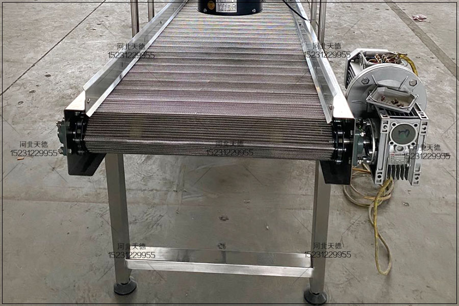 鏈條式網帶輸送機 面條蒸煮鏈條式網帶輸送機控制模塊式網帶用拓寬在網帶全部總寬上的塑膠固接銷,將注塑工藝的網帶鏈式輸送帶拼裝成自鎖互鎖模塊。這種形式提升了鏈條輸送帶的抗壓強度,并能 夠組接成 一切須的總寬和長短。隔板與檔板還能用固接銷自鎖互鎖,變成不銹鋼鏈板輸送帶總體構件之一。