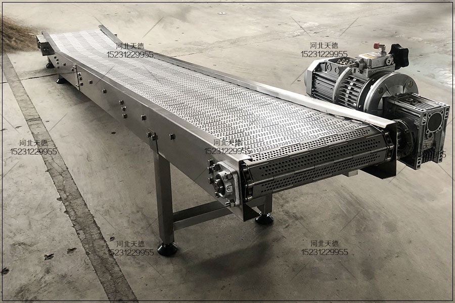 鏈板輸送機(jī)歡迎來(lái)電河北天德速凍蔬菜流水線鏈板輸送機(jī):15231229955 網(wǎng)址:http://www.gdkj120.com/