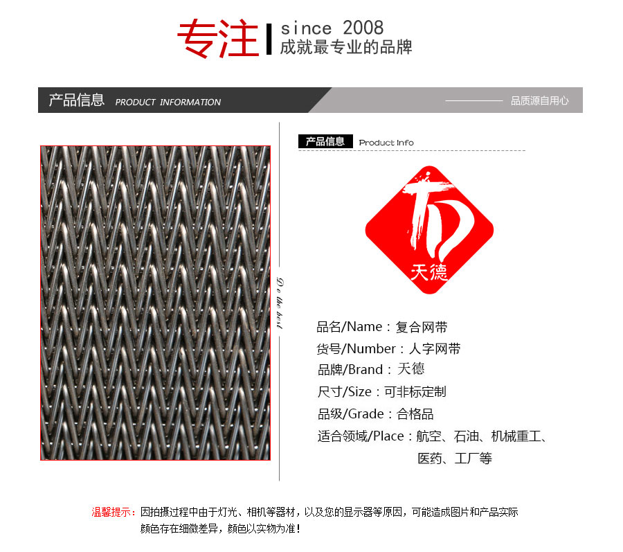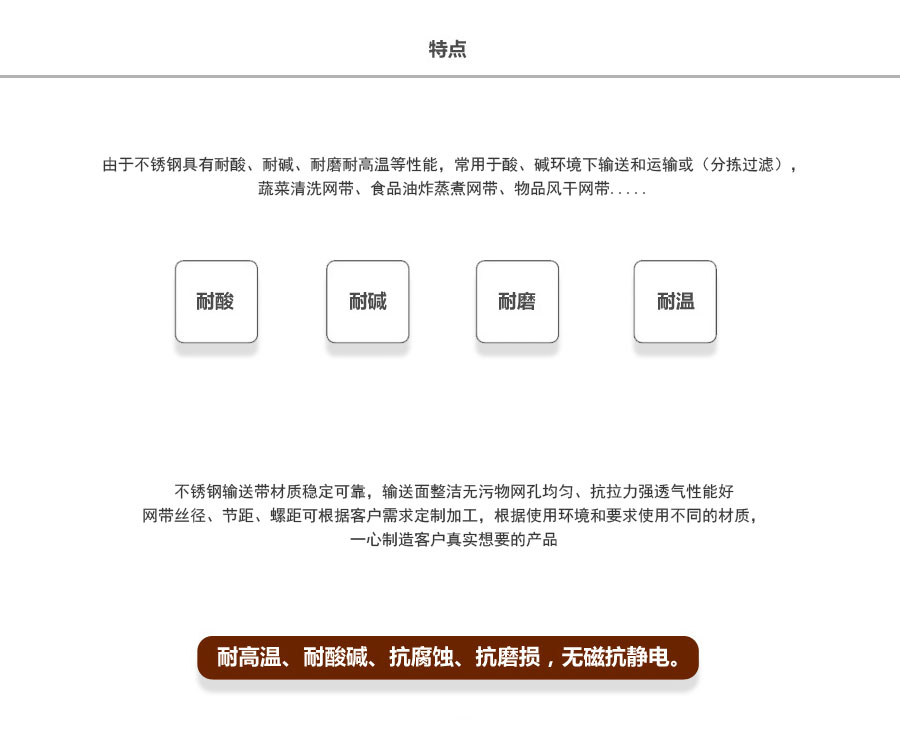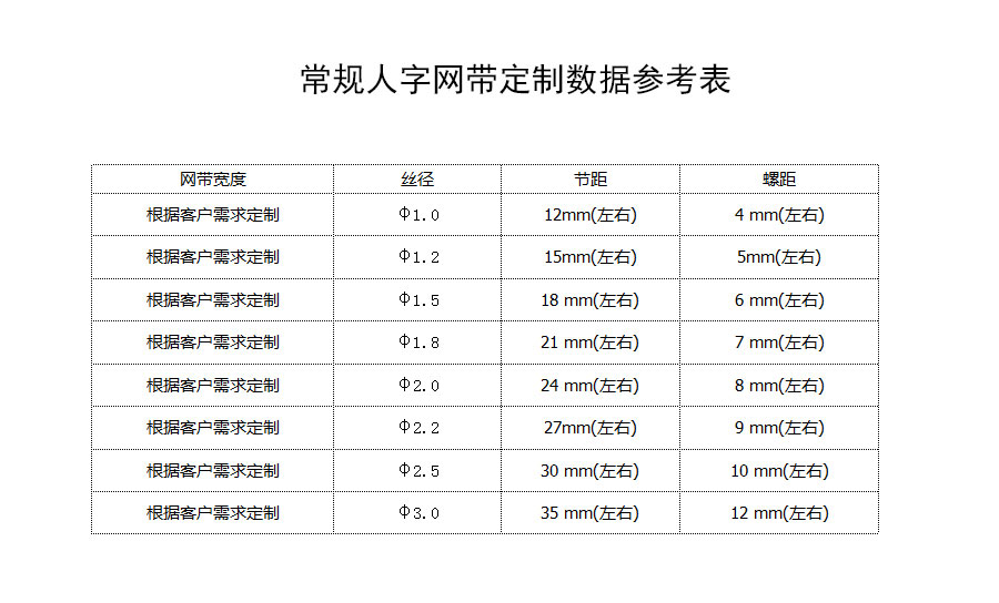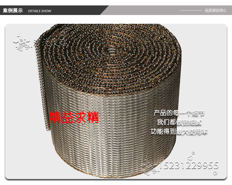 不銹鋼網帶屬于非標準件,我們將根據你提供的規(guī)格長寬,材質,絲徑,編制結構尺寸,支軸直徑,支軸間距,鏈條型號等數據核算成本和制作.