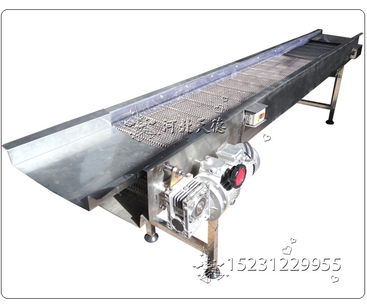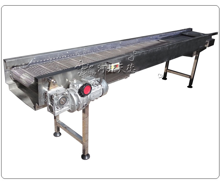 組成結(jié)構(gòu):由鏈輪、鏈條、網(wǎng)帶、驅(qū)動(dòng)設(shè)備組成,可根據(jù)輸送物料的種類、體積、重量來(lái)選用不同形式的網(wǎng)帶。