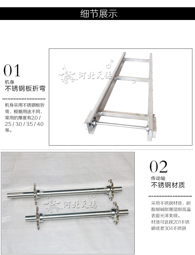 ◆ 牽引鏈和承載鏈二合一,使結構簡化,成本降低,安裝維修方便。