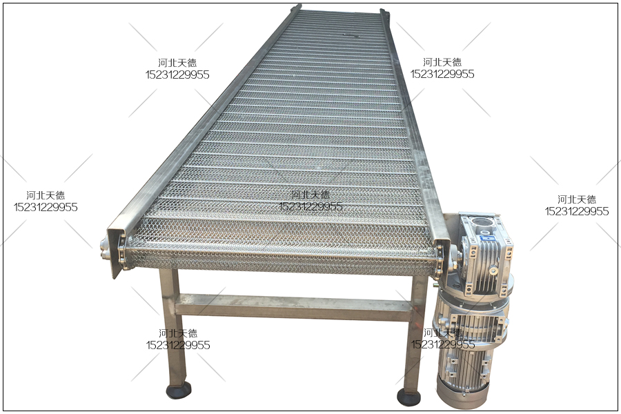 河南開封客戶定制的網帶輸送機,用來輸送簡單的物料進行到下一個環節,這臺輸送機采用的是鏈條式不銹鋼輸送帶運輸物料的。